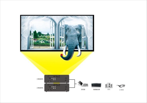 被動式3D教學解決方案由2臺雅圖高亮工程投影機、偏振片及3D眼鏡、視頻融合器等組成。將兩臺投影機畫面用鏡頭位移的方法重疊,再通過投影機自帶的四角梯形校正功能把兩個畫面毫無差別地重合在一起,播放器輸出的3D視頻信號分兩路,分別傳輸到兩臺疊加的雅圖高亮工程投影機上,實現特殊片源在100寸專用幕布的3D投影,能讓師生享受高清視頻圖像效果,投影機的鏡頭位移及四角校正功能也能使本方案的調試、安裝更加方便,適合不同的教學場合。