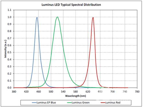 下面我們通過廠家數(shù)據(jù)看下Luminus與ORAM(歐司朗)的LED燈發(fā)光光譜有何區(qū)別: