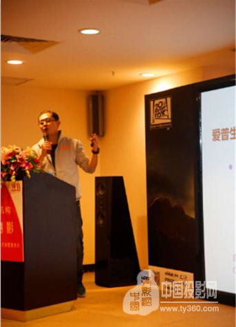 隨后網庭影音機構產品總監趙國臣就“V影院”的具體內容發表了演說。通過對如今中小型影音室發展以及電影產業的形勢做出分析。提出“V影院”將會以私家影院、影吧、茶社/咖啡館、企業視聽室、體驗館等六大類影音環境作為主要出發點,將“V影院”打造成一個社交型的影院平臺,整合內容資源,真正滿足客戶需求,區別傳統院線。