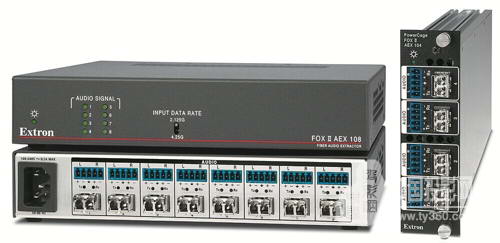 Extron 電子很高興地推出兩款最新的 FOX II 系列光纖產品 - FOX II AEX 108 和 PowerCage FOX II AEX 104,分別是 8 端口和 4 端口音頻提取器。它們為光纖視音頻分配系統中的音頻信號提供了獨立的處理和路由。每一個光纖輸入端口均可提取兩聲道音頻信號以提供平衡或非平衡模擬立體聲音頻。這些音頻提取器提供了多模和單模型號。設計安裝在 PowerCage 1600 機箱內的 PowerCage FOX II AEX 104 以及可機架安裝的 FOX II AEX 108 非常適用于機房內需要提取音頻信號進行本地處理的 FOX 矩陣系統。