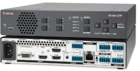 美國加利福尼亞州,阿納海姆市Extron 電子很高興地推出了 IN1604 DTP,這是一款符合 HDCP 標準、1U 高、半機架寬外殼的圖像解析度轉換器,具有 3 路 HDMI 輸入、1 路通用模擬視頻輸入和 1 路 DTP 輸出。IN1604 DTP 非常適用于安裝在會議桌下面和講臺里面,為本地信號源,如演示者的設備提供切換,并可通過 CATx 屏蔽電纜將信號延長至 100 m (330') 遠的墻上或吊頂安裝的顯示設備。IN1604 DTP 提供了方便可靠的快速自動切換功能,其高性能的圖像解析度轉換引擎能接收 HDMI 和模擬視頻信號源。IN1604 DTP 還具有許多用于控制和配置的音頻處理功能和其它功能選項。