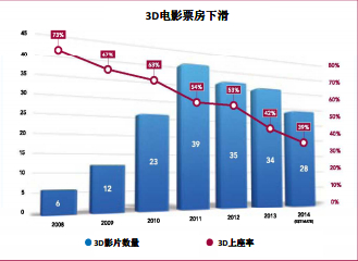 3D票房的急劇下滑,尤其是全球市場3D票房的下滑,引發了電影產業越來越多的關注。制片人、工作室和影院來說,3D影片曾經被認為是一種革新的強大平臺,能創造和展示如臨其境且極富沖擊感的內容。然而,由于影片內容對消費者吸引力不足,導致3D票房回收率急速下滑。