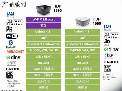 飛利浦HDP1590區別于以往的投影產品, 飛利浦HDP159首個實現只需要 10cm – 44cm 的距離,即可呈現 50" – 100 "英寸大畫面的產品。并可多個房間移動使用。