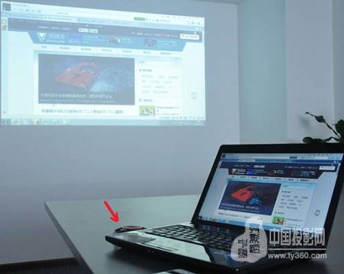 按照上述操作步驟,將另外一個USB按鈕插在電腦上,輕輕按一下。你沒有看錯,兩個電腦屏幕同時出現在投影屏幕上。