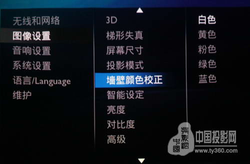 ▲投影墻壁或者幕布顏色設置