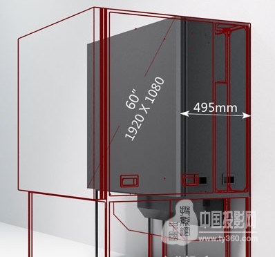60VHSF僅有495mm厚度,相較于以前的產品,厚度大幅減少約35%。而且,這款產品采用具有專利技術的前維護設計,對后部維護空間沒有任何要求。所以,從設備占用空間的總厚度來講,反而要少于液晶和小間距LED。