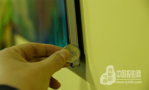 屏幕方面盡管華錄激光電視達到了100英寸的超大顯示面積,然而在厚度方面,1厘米的極窄邊框估計可以完勝各位家中的小尺寸液晶電視了吧?而且要知道這塊屏幕完全不會消耗任何電量,它無需電力驅動,屏幕上特殊的傾斜結構可以避免投射畫面受到周圍光線的困擾,大幅提升畫面的色域以及對比度表現,82%的色域以及10000:1超高對比度規格出色。