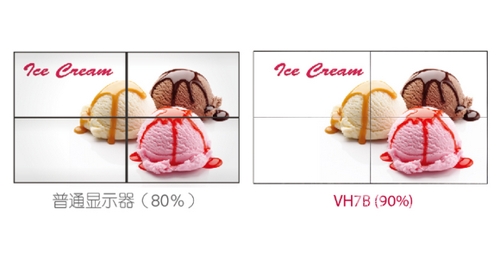 LG VH7B具有更高的亮度均勻性。顯示器亮度為700nits同時采用業內以專業著稱的IPS硬屏技術以及LED背光技術,有效避免了其他顯示器出現的屏幕局部較暗的現象。LED背光技術保證了拼接屏屏幕亮度的高度統一,有效消除了任意視角時的顏色變化和失真情況,即便是在大型場所大規模安裝也能夠保證用戶在任意角度觀看都能獲得清晰的畫面,保持整塊拼接墻持續的亮度的統一性,為用戶帶來完美的顯示解決方案。