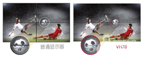 LG VH7B具體圖像錯位調整的功能。為提升用戶的觀看體驗,LG VH7B拼接屏顯示器提供了圖像改進算法以調整位于邊框邊界的圖像,使畫面表現更加流暢,成像更加完整,從而提供給用戶無縫的視覺效果。