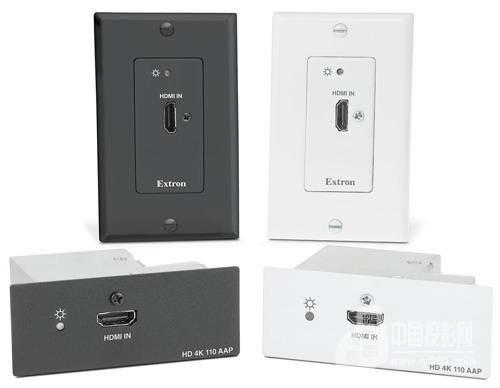 Extron 電子很高興地推出了 HD 4K 110 系列,這是一路輸入、一路輸出的信號再生器,可確保臨界狀態或劣質 HDMI 信號源輸出完整的信號。這款信號再生器符合 HDCP 標準,并支持分辨率高達 4K 的計算機和視頻信號,包括 1080p/60 深色。其設計用于在信號源端修復信號,并進行輸入信號均衡以減少抖動和信號扭曲,他們還具有輸出信號預加強功能,能可靠地延長信號。使用 Extron HDMI Pro 系列電纜,可將分辨率高達 4K 的視頻信號延長至 76 m (25') 遠的距離。HD 4K 110 系列有兩種規格:用于 Extron 第二代 Cable Cubby 系列接線盒或其他 AAP 安裝框架內的雙格 AAP 型號,以及單格 Decora 型墻面板型號。這兩款型號都是由 HDMI 信號源或隨附的電源供電,增強了集成的靈活性。有適合不同環境的白色和黑色供選擇,HD 4K 110 AAP 和 HD 4K 110 D 是 HDMI 信號源長距離隱蔽布線的理想之選。