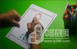 小朋友可以用彩筆在紙上畫出海洋動物,顯示在大屏幕中