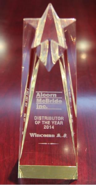 2015年1月贏康年度培訓(xùn)期間,美國(guó)Alcorn McBride公司授予贏康“2014年度經(jīng)銷商的獎(jiǎng)牌”。