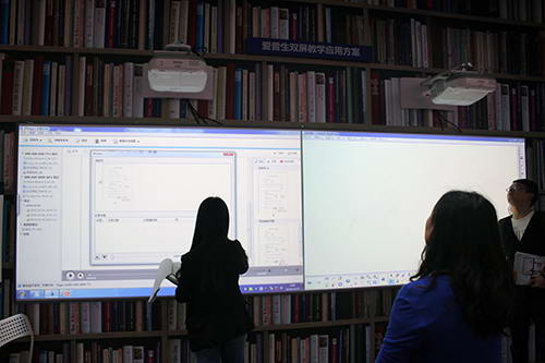現代信息化教學對互動性要求越來越高,愛普生為了滿足用戶的需求。展示了由兩臺愛普生CB-595Wi組成的超短焦遠程互動教學方案。此套方案由兩臺CB-595Wi投影機,搭建網絡環(huán)境后,通過安裝Epson Network Projection軟件,可實現遠程互動,兩地的投影內容共享顯示,適用于多間教室及多所學校,遠程教學時使用。