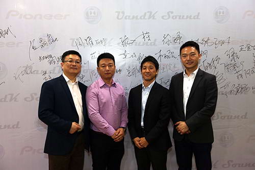 從左至右:美國杜比實(shí)驗(yàn)室國際技術(shù)服務(wù)(上海)有限公司亞太區(qū)高級(jí)市場(chǎng)總監(jiān)郭昌宏先生、深圳瑟爾科技有限公司總經(jīng)理胡特先生、日本Pioneer家用產(chǎn)品市販部部長奧田秀希先生、美國杜比實(shí)驗(yàn)室大中華區(qū)市場(chǎng)總監(jiān)柯永德先生