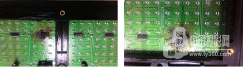 第一,P10單面板用一個(gè)集成芯片代替了雙面板 595 IC和行掃4953 IC,在成本上雖有所節(jié)省,但集成芯片的發(fā)熱量超乎想像,易燒芯片,燒板。反之,P10雙面板,使用常規(guī)驅(qū)動(dòng)IC和行掃電源IC(4953),大電流路徑分散,發(fā)熱量分散,故溫度較低,減少芯片燒壞現(xiàn)象的出現(xiàn)。
