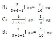 因為在顯示屏白平衡時,RLED、GLED和BLED的強度比約為3:6:1,因此對于亮度為L屏(單位cd/m2)的顯示屏在白屏的情況下,每個像素點的光強度I像素=L屏(cd/m2)÷點數/m2÷η(η為光的系統損耗度,一般可取0.9左右);則R、G、B所占的光強值分別為: