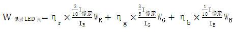 設上述R、G、BLED燈珠芯片的電光轉換效率分別為ηr、ηg和ηb(電光轉換效率LED芯片將電能轉變為光能的效率)。則上述每像素RGBLED輻射的光功率為: