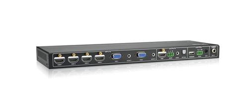 SC61E是一款小而薄的4K迷你倍線切換器,支持將不同的VGA、HDMI音視頻信號轉換為統一的HDMI信號輸出。輸入信號有:4 路HDMI& DVI(最高支持4Kx2K)信號、2 路VGA 視頻信號、2 路與VGA 視頻信號同步切換的音頻信號。VGA自帶Scaler,可轉換為高清格式的HDMI輸出,最高倍線分辨率可達1920x1200@60Hz。SC61E支持的輸出信號有:1路HDMI信號輸出、1路L+R左右立體聲插拔接線端子音頻輸出、1路3.5mm立體聲音頻輸出和1路光纖數字音頻輸出,信號源支持自動切換和手動切換。