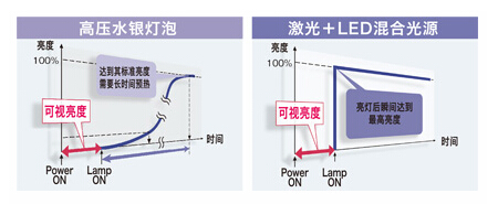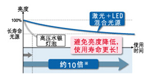 水銀燈泡的壽命是傳統投影機最大的劣勢,高昂的后續支出費用使得許多對投影機感興趣的消費者望而卻步。但是此次CORE系列投影機使用全新的混合光源技術,使用壽命是燈泡機的10倍左右,并且電力消耗只有普通燈泡投影機的一半。在減少維護成本和使用成本的同時,亮度的衰減也較慢。