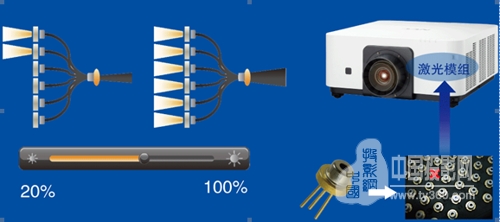 亮度調節、激光光源采用多模組結構,如果有一個激光二極管出現故障,對整體