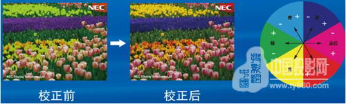 校正技術,實現每種色彩的色相進行獨立的調整,對于多臺同時使用的投影機由于長時間使用后產生的色彩不一致現象,能夠實現準確的色相