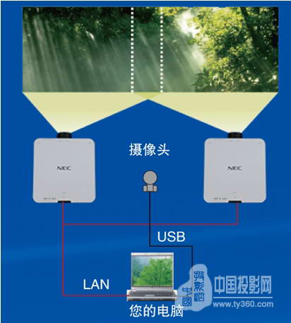 NEC獨創的智能融合功能能夠最大支持4臺投影機在同一平面內實現拼接融合。配合NEC提供的專用軟件Multi Screen Tool,用戶可在連接外用攝像頭的情況下實現對投影機的自動融合及調整,整個過程告別了手工調節的繁瑣操作,讓融合調試更便捷更實用。