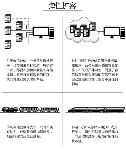 2015年7月9日,科達(dá)正式發(fā)布第二代云存儲(chǔ)系統(tǒng)——“天際”云存儲(chǔ)!疤祀H”云存儲(chǔ)采用經(jīng)典云計(jì)算架構(gòu),通過(guò)存儲(chǔ)虛擬化、分布式系統(tǒng)、集群化應(yīng)用等一系列技術(shù),滿足大數(shù)據(jù)時(shí)代下的海量視頻存儲(chǔ)需求。