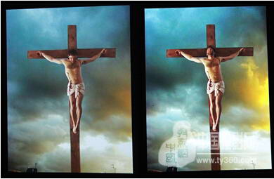 《搖晃著的基督》——同樣是單臺(tái)激光投影機(jī)投射的作品,宛如油畫(huà)一般的場(chǎng)景,不過(guò)畫(huà)面中的背景和人物并非靜止,而是隨著時(shí)間的流逝不停有所變化。對(duì)主題熟悉的人會(huì)第一時(shí)間意識(shí)到基督教中的宗教象征,而對(duì)主題不熟悉的人則會(huì)關(guān)注到,藝術(shù)家馬特.克里肖(Mat Collishaw)通過(guò)更新的技術(shù)表現(xiàn)手段來(lái)重新詮釋這一主題。投影展現(xiàn)的畫(huà)面色飽滿(mǎn)郁氣氛濃郁,給人以極大的震撼。