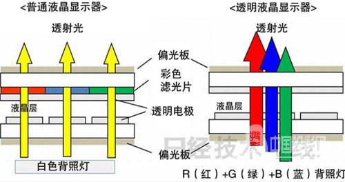 夏普開(kāi)發(fā)出了被稱(chēng)為“透明液晶顯示器”的液晶產(chǎn)品。其特點(diǎn)是,與普通液晶顯示器不同,為實(shí)現(xiàn)明亮的顯示而去掉了用來(lái)吸收背照燈光的彩色濾光片。彩色顯示是通過(guò)彩色場(chǎng)序方式來(lái)實(shí)現(xiàn)的。這種方式可高速切換紅(R)、綠(G)、藍(lán)(B)3色背照燈的光線,并與之同步高速切換顯示圖像。