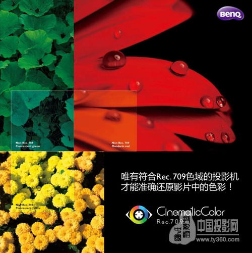 在1990年,國際電信聯盟推出了世界統一的HDTV標準,Rec.709作為標準色域格式,是電視、電影等行業在拍攝和播放HDTV節目時必須遵循的標準色域規格。可能普通用戶對它還不夠了解,不過讓我們來看看行業專家對Rec.709的推崇吧。在最近召開的明基專業家用投影機2015-2016年度新品發布會上,電影調色師馬平,新銳導演郭東旭,以及長期從事攝影教學的唐東平教授都對明基新品在色彩上的卓越表現進行了肯定。他們表示,色彩是電影的藝術,反映了導演們的創作意圖,而觀眾能否真實的感受到這些藝術,取決于顯示終端能否將它們真實準確地表現出來。因此他們都建議普通用戶盡可能選擇符合Rec.709色域標準的投影機,唯有如此才能更精確、更忠于原味地傳達出富有魅力的電影色彩語言,并在家庭觀影時看到接近影院標準的色彩效果。