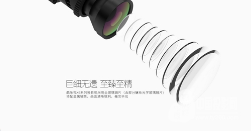 不過(guò),僅僅依賴TRT方形像素以及DMD無(wú)縫像顯然不成。在大家極為關(guān)注的鏡頭方面,酷樂(lè)視X6運(yùn)用的也是目前微投領(lǐng)最佳的鏡頭。簡(jiǎn)單高品質(zhì)的鏡頭,是投影機(jī)高畫質(zhì)顯示的有力保證,還有用戶較為關(guān)心的投影機(jī)的投射比,也是由鏡頭優(yōu)劣所決定的。酷樂(lè)視X6的投射比僅為1.6,在實(shí)際運(yùn)行效果方面幾乎達(dá)到了超短焦的水準(zhǔn)。這也直接讓酷樂(lè)視X6不需要,不改變?cè)瓉?lái)家庭裝修結(jié)構(gòu),便能實(shí)現(xiàn)100寸的巨大屏幕,給用戶帶來(lái)足不出戶便能享受影院級(jí)視覺沖擊的體驗(yàn)效果,極大地解決了用戶的痛點(diǎn)。