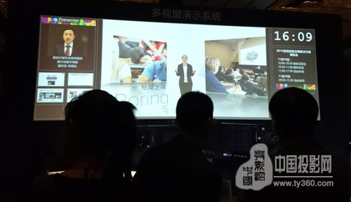 本次巡展展示的多視窗演示系統(tǒng)由支持4K圖像輸出的VPB-4640做為核心,通過兩臺VPL-F635H投射出3840*1200的寬畫面;窗口顯示的內(nèi)容包括時鐘、行程安排、演示文稿、演講人照片、服務(wù)器內(nèi)存視頻播放、實(shí)時視頻采集信號和電腦無線實(shí)時鏡像信號。在輕松自定義個性化多窗口布局更大、更美、更炫酷的同時還無需擔(dān)心系統(tǒng)設(shè)置的繁瑣,除此之外,每一位感興趣的觀眾都可以方便快捷地通過手機(jī)、平板電腦成為參與者,下載、預(yù)覽演講者提供的素材。