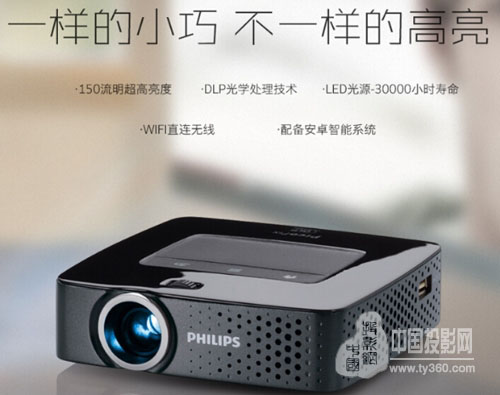 飛利浦PPX3615產品采用了高透光鍍膜鏡頭德州儀器DLP光學技術,采用了LED光源燈泡,支持30000小時的使用壽命, 配置了智能安裝系統,支持Wi-Fi無線連接,可與智能手機無線互動同屏顯示,操作應用非常方便。
