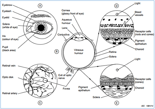 略了激光由于其窄波長和能量集中的特點,使其會對人的眼睛和皮膚帶來潛在的健康問題,如皮膚和眼睛的光化學危害、眼睛的近紫外危害、視網(wǎng)膜藍光光化學危害、視網(wǎng)膜無晶狀體光化學危害、視網(wǎng)膜熱危害和皮膚熱危害等,而兩者之中更容易受到傷害的是眼睛。