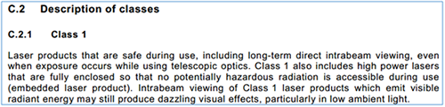 其實,國際電工委員會根據(jù)激光顯示的發(fā)展要求,更新制訂了激光安全等級標準IEC60825 Edition 3.0(Safety of laser products –Part 1: Equipment classification and requirements),于2014年5月正式發(fā)布,又稱IEC60825-2014,在此標準中,IEC根據(jù)投影顯示系統(tǒng)投射或泄露出來的激光波長(180 nm-1 mm)和持續(xù)發(fā)射時間內(nèi)(>=0.25s),檢測和計算人員可接觸到的輻射量,并結(jié)合應用領域把激光安全分為多個等級,包括:Class 1,Class 1M,Class 1C,Class 2,Class 2M,Class 3R,Class 3B,Class 4八個等級.激光安全等級認證是歐美市場準入的強制標準。