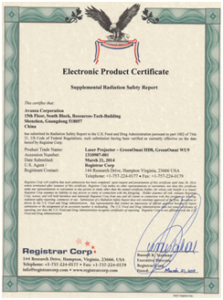 美國市場稍微特殊一點,激光產(chǎn)品需要得到FDA(美國食品藥品監(jiān)督管理局)的認證才可以在美國境內(nèi)銷售,F(xiàn)DA對激光安全的認證標準同樣也是參考IEC 60825,但是美國對于IEC 60825的2014版仍在評估中,到目前為止(2016年1月)還未正式采用,所以,F(xiàn)DA的認證仍然沿用IEC 60825-2007版,而按照2007版的標準,激光投影機所采用的各種激光技術(shù)都被歸為Class 3R及以上級別。特例:AVANZA GreenOmni HD8/WU9 產(chǎn)品是目前世界上唯一獲得FDA Class 2等級認證的激光投影機產(chǎn)品(FDA認證檢索號:1310907-001)