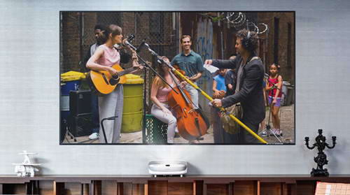 家人之間的愛不能太過挑剔,明基i910“智能超投電視”很好的體現出這點。55cm的距離就可以放出100吋的超大屏畫面,厚度僅3cm的百吋超薄抗光屏幕擁有1.1cm超窄邊框,掛在墻上也是非常氣派。無論是裝修一新的豪宅,還是簡樸狹小的居室,明基i910都能很好的融入其中,毫不挑剔。