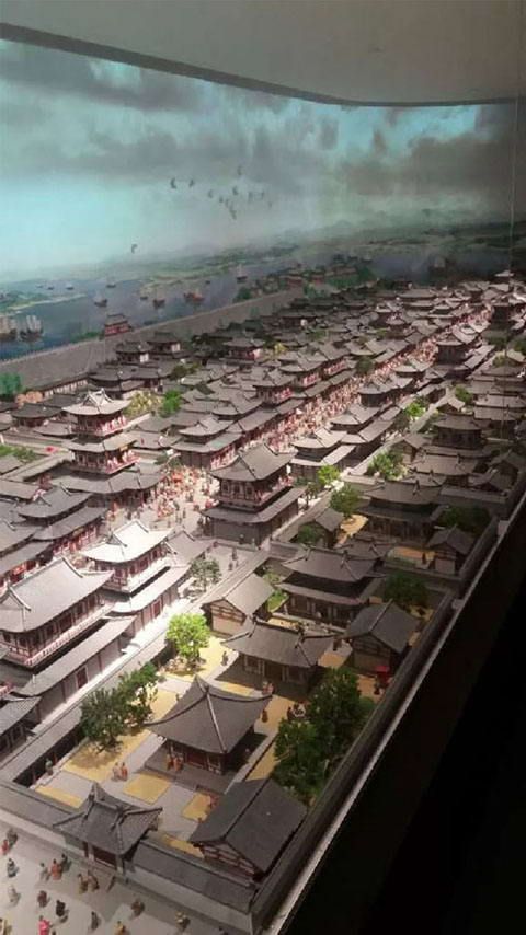 在明堂有一個壯觀的洛陽城沙盤,此沙盤模型制作面積達(dá)到130多平米,模型比例1:800。整個模型既要真實(shí)還原隋唐時期的洛陽古城,還要完整體現(xiàn)現(xiàn)今五大遺址的位置分布。沙盤背景墻投影使用了五臺科視DWU555-GS激光投影機(jī),在屏幕上顯示隋唐時代洛陽城的動態(tài)人文圖像,與靜態(tài)的沙盤交相呼應(yīng),生動形象的為人們展示了隋唐時代洛陽普通百姓的風(fēng)俗習(xí)慣和日常生活。