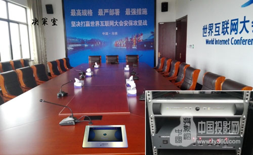 本屆世界互聯網大會秉承智慧化、國際化以及精細化的安保理念,在指揮部指揮調度室及決策室中分別安裝了CREATOR快捷全智能中央控制系統。該系統以中央控制主機CR-PGMШ為核心,功能強大。通過8英寸手持無線可編程觸摸屏CR-WiFi WG7pip、9鍵墻上控制面板CRWM-9等設備作為人機交互式平臺,一鍵隨心控制各種顯示終端、投影機、展示臺、DVD、功放、會議系統、電動屏幕、電動窗簾、燈光等設備。