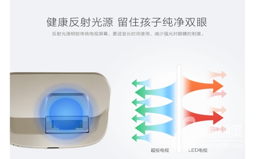 據中、美、澳三國防治兒童近視研究項目報道,我國近視人口數量已居世界前列,且40%以上均為3-18歲的孩子。究其原因,傳統液晶電視中的藍光光源是一大元兇,因為孩子的視力系統尚未發育完全,大約有70%的藍光都直達視網膜,對視力造成不可恢復的傷害。而一旦發生近視,不僅會降低孩子的課堂學習效率,也會減少報考專業、擇業時的可選余地。明基超投電視i920采用了更加健康的反射光源,配合理光高素質內反射鏡頭,通過將光線投射到屏幕上再反射入人眼的方式,可避免光源直射損害人眼的視力,同時提升30%畫面邊角均勻性,提供更為安全、清晰、舒適的觀賞體驗,適合長時間觀看時使用。