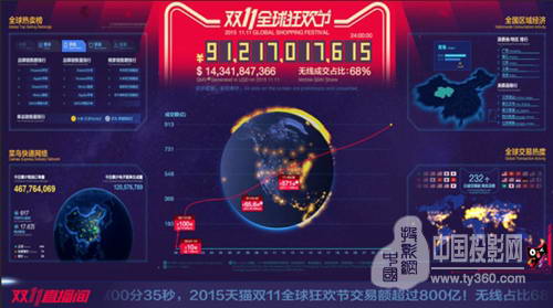 回顧2015年雙十一在水立方的媒體中心,位于正中的顯示屏給我們帶來(lái)了震撼的數(shù)據(jù)展示: