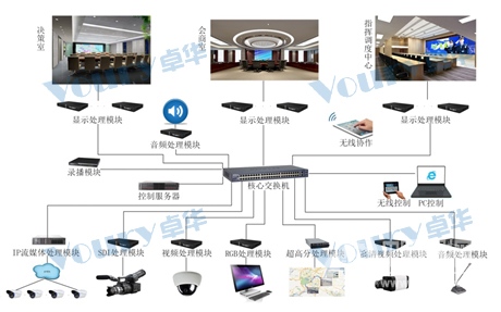 Voury卓華網(wǎng)絡(luò)分布式控制系統(tǒng)可最大限度的接入各種信號(hào)源,進(jìn)行處理顯示,Voury卓華可根據(jù)用戶(hù)需求進(jìn)行擴(kuò)展級(jí)聯(lián),保證所有信號(hào)的集中處理顯示。