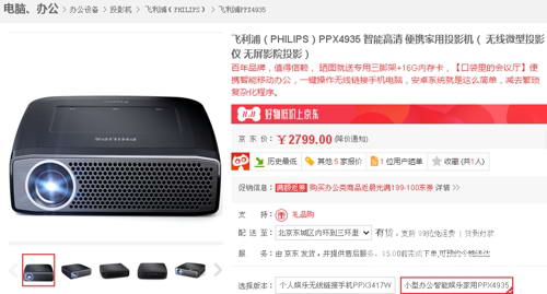 飛利浦PPX4935無線家用娛樂投影機 市場售價:2799元