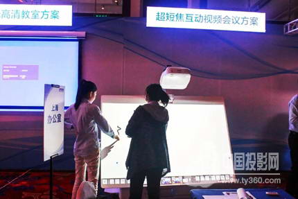 展會現(xiàn)場,一面8米長的背投屏幕上反復(fù)播放著愛普生的公司介紹和參展的產(chǎn)品信息與方案,8米的大屏如果按照常規(guī)要求安裝投影機,投影機和屏幕的距離一定很大,而這里的空間有限,愛普生又是在這么近的距離內(nèi)實現(xiàn)了投影,其背后的“秘密武器”就是安裝在投影機上的“超短焦鏡頭”。