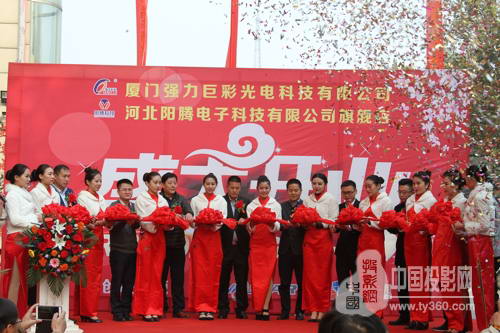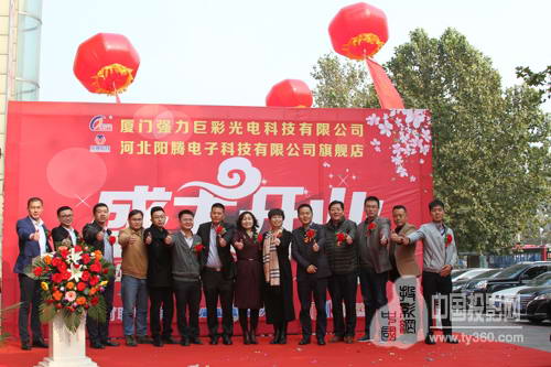 秋末冬初,寒風(fēng)呼嘯,可強(qiáng)力巨彩河北陽(yáng)騰旗艦店的門口卻鑼鼓喧天,賓朋齊聚,熱烈慶祝盛大開(kāi)業(yè)。廈門強(qiáng)力巨彩光電科技有限公司副董事長(zhǎng)周國(guó)華,石家莊市新華商業(yè)廣場(chǎng)總經(jīng)理王石良,廈門強(qiáng)力巨彩光電科技有限公司副總經(jīng)理兼營(yíng)銷總監(jiān)黃志勇、產(chǎn)品代言人廖小斌,上海靈信視覺(jué)技術(shù)股份有限公司營(yíng)銷總監(jiān)鄭君矗,西安諾瓦電子科技有限公司營(yíng)銷副總監(jiān)李志敏,常州市創(chuàng)聯(lián)電源科技有限有限公司銷售部經(jīng)理吳明江等各屆社會(huì)人士悉數(shù)到場(chǎng)祝賀,為陽(yáng)騰旗艦店開(kāi)業(yè)剪彩。