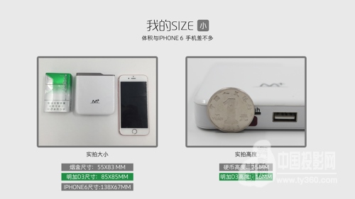 把眼睛聚焦在下面這張圖的手掌,可以看到的是在手掌中有一個小方塊,是充電寶嗎?但是在小方塊的一端有像是有光束投出?難道是一款帶手電筒的充電寶?還是就是手電筒呢?對于這些疑問,小編在這里都要將你的想法全盤否定,這不是充電寶,也不是帶手電筒的充電寶,也不是手電筒,這是一款“帶投影機的充電寶”,也就是智能微型投影機,品牌:明加MINGMORE,型號: D3,進入鏈接http://www.mingmore.com/Product/index/goodsId/11.html可了解他的詳細(xì)身世。