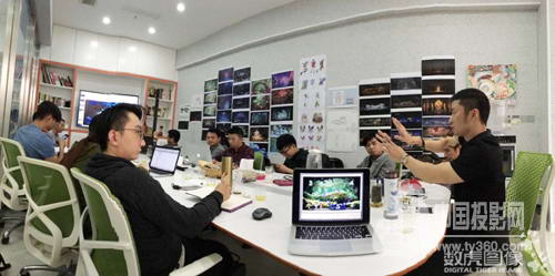 數(shù)虎圖像創(chuàng)意總監(jiān)陶凱(中)帶領(lǐng)設(shè)計(jì)團(tuán)隊(duì)在現(xiàn)場(chǎng)