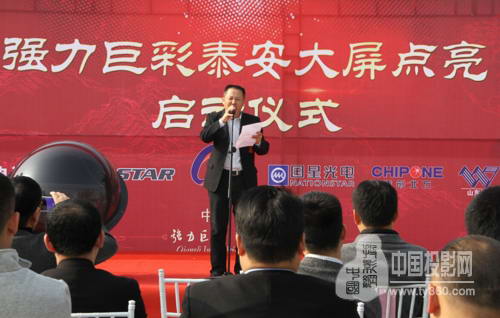 強力巨彩董事長朱志強先生為泰山大屏點亮儀式致辭
