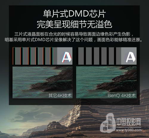此外,明基4K投影機還繼承了明基機色準投影機的真實色彩表現。14片新鍍膜低色散鏡片,6倍速RGBRGB純色系色輪,結合明基投影機豐富的色彩調校經驗,使得畫面符合REC.709國際高清色彩標準。而對于想要組建4K家庭影院的發燒友來說,這無疑是件心頭好物!