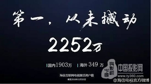 11月16日,“看好2017”聚好看客廳大屏價值峰會在北京舉行,擁有2252萬激活互聯(lián)網(wǎng)電視用戶的海信聚好看平臺,成為中國OTT電視“第一屏”! 聚好看科技股份有限公司總經(jīng)理于芝濤透露,海信最新的互聯(lián)網(wǎng)電視用戶數(shù)量已經(jīng)達(dá)2252萬,繼續(xù)全球領(lǐng)跑。明年預(yù)計(jì)用戶量達(dá)3300萬,覆蓋近1億觀眾。